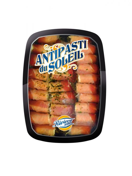 Involtini : Roulés de speck au fromage frais. Une référence dans notre gamme d'antipasti du Soleil ! Fines tranches de speck roulées autour de fromage de chèvre frais. Idéal pour égayer l’apéritif ou à se glisser tout naturellement dans un assortiment d’antipasti avec des légumes grillés marinés ... Fromage frais (chèvre), speck (affiné 6/8 mois), huile d'olive, herbes aromatiques (laurier et origan).